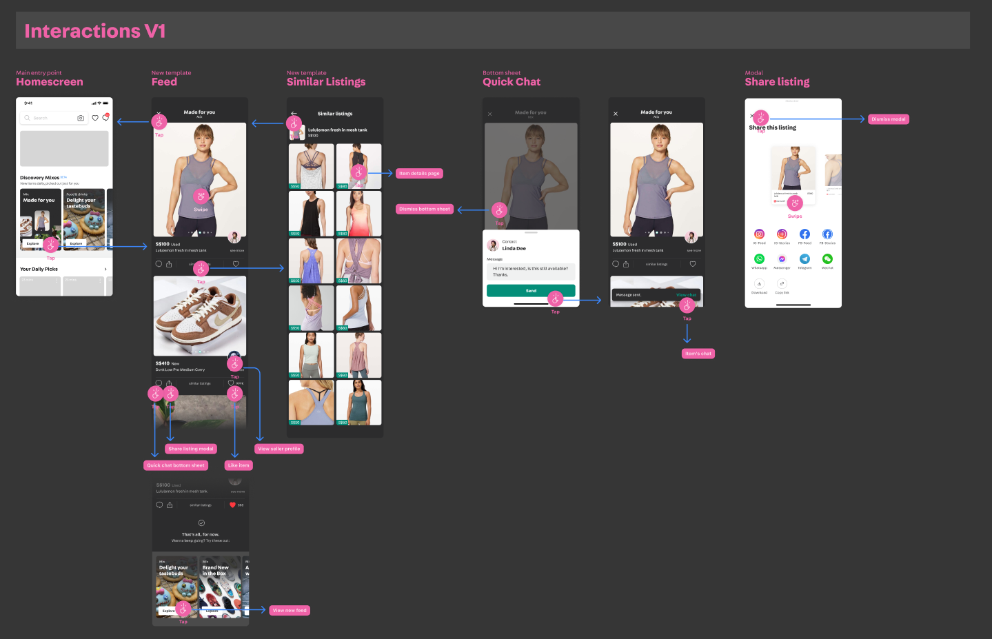 After a series of quick brainstorming sessions and rounds of user usability testing, the team defined and developed an complete new discovery flow. The focus of the solution was on exposing users to a wide range of listings with a simple UI while capturing real-time user feedback to further improve content relevance.