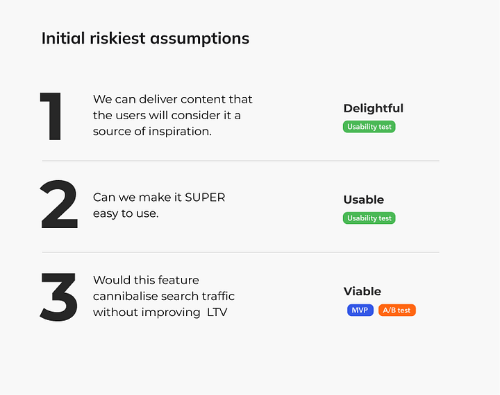 From this understanding we decided to start by focusing on the top of the funnel and created our first big hypothesis/assumption: